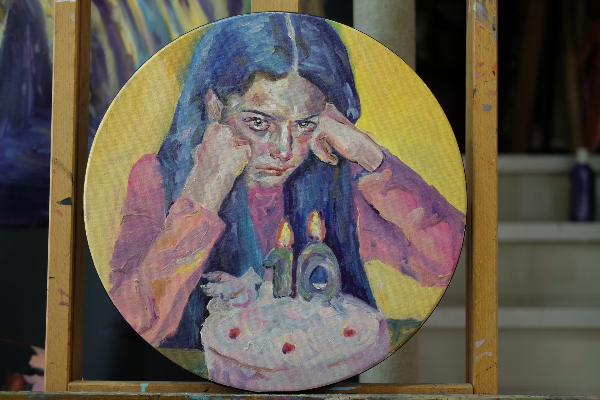 It's my party 300,00 € Desconto de %. Partilhar Comprar Contactar ORIGINAL Peça única 1/1 Daniela Reis, 2019. Diametro 20 cm, óleo sobre tela. A obra é assinada e entregue com certificado de autenticidade.