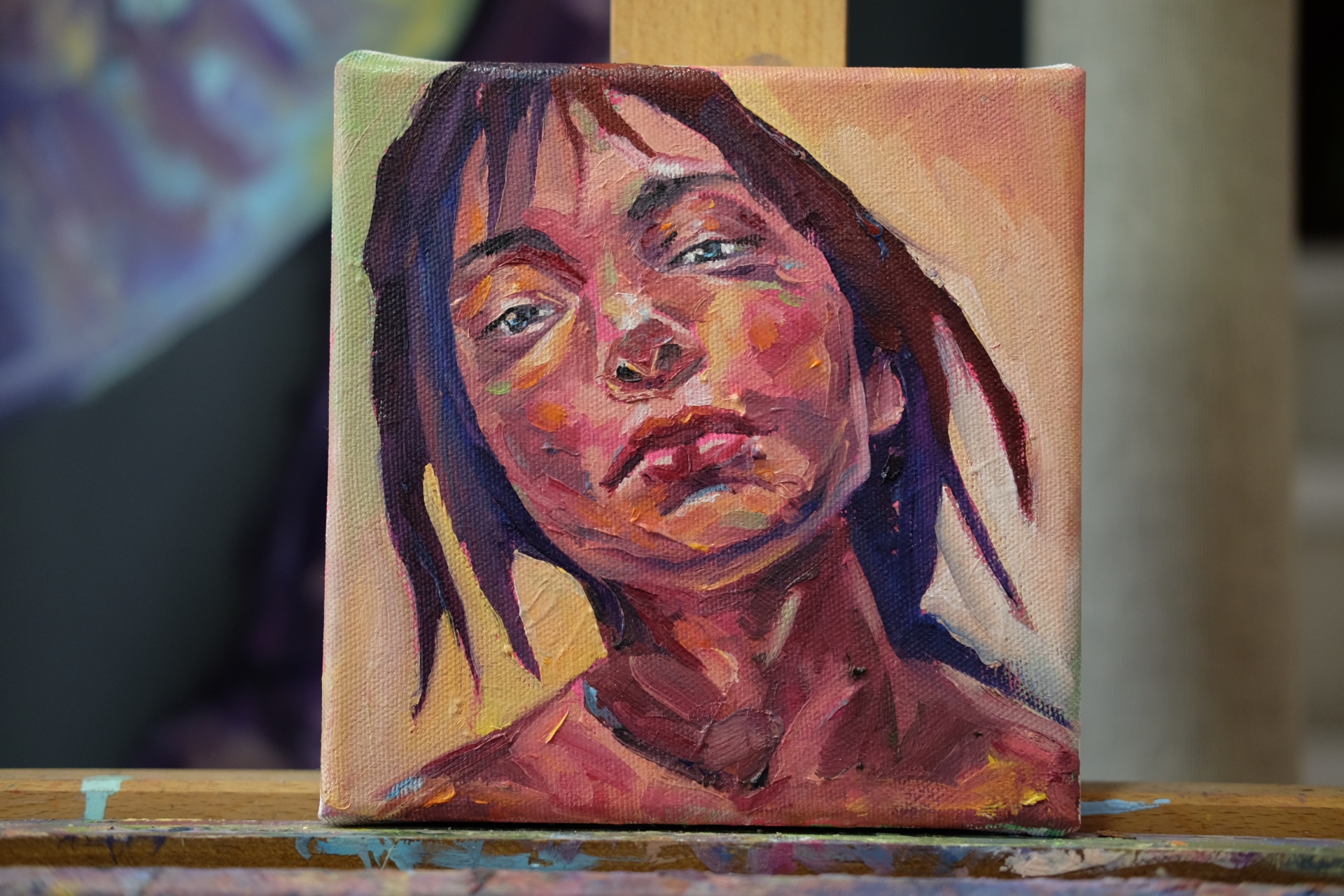 Retrato 2 100,00 € Desconto de %. Partilhar Comprar Contactar ORIGINAL Peça única 1/1 Daniela Reis, 2019. 16 cm x 16 cm, óleo sobre tela. A obra é assinada e entregue com certificado de autenticidade.