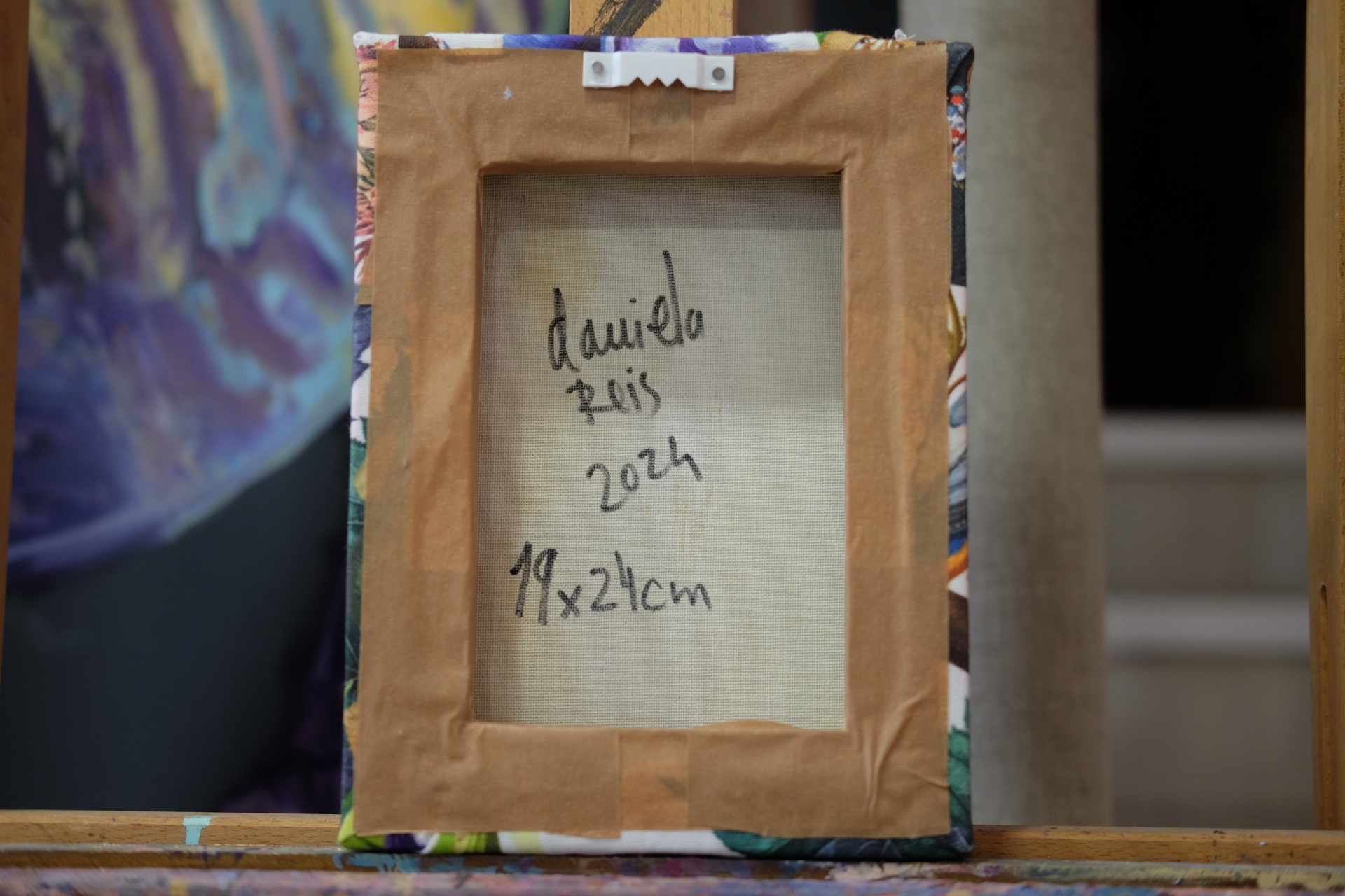 Retrato 4 150,00 € Desconto de %. Partilhar Comprar Contactar ORIGINAL Peça única 1/1 Daniela Reis, 2019. 19 cm x 24 cm, óleo sobre tela e tecido. A obra é assinada e entregue com certificado de autenticidade.
