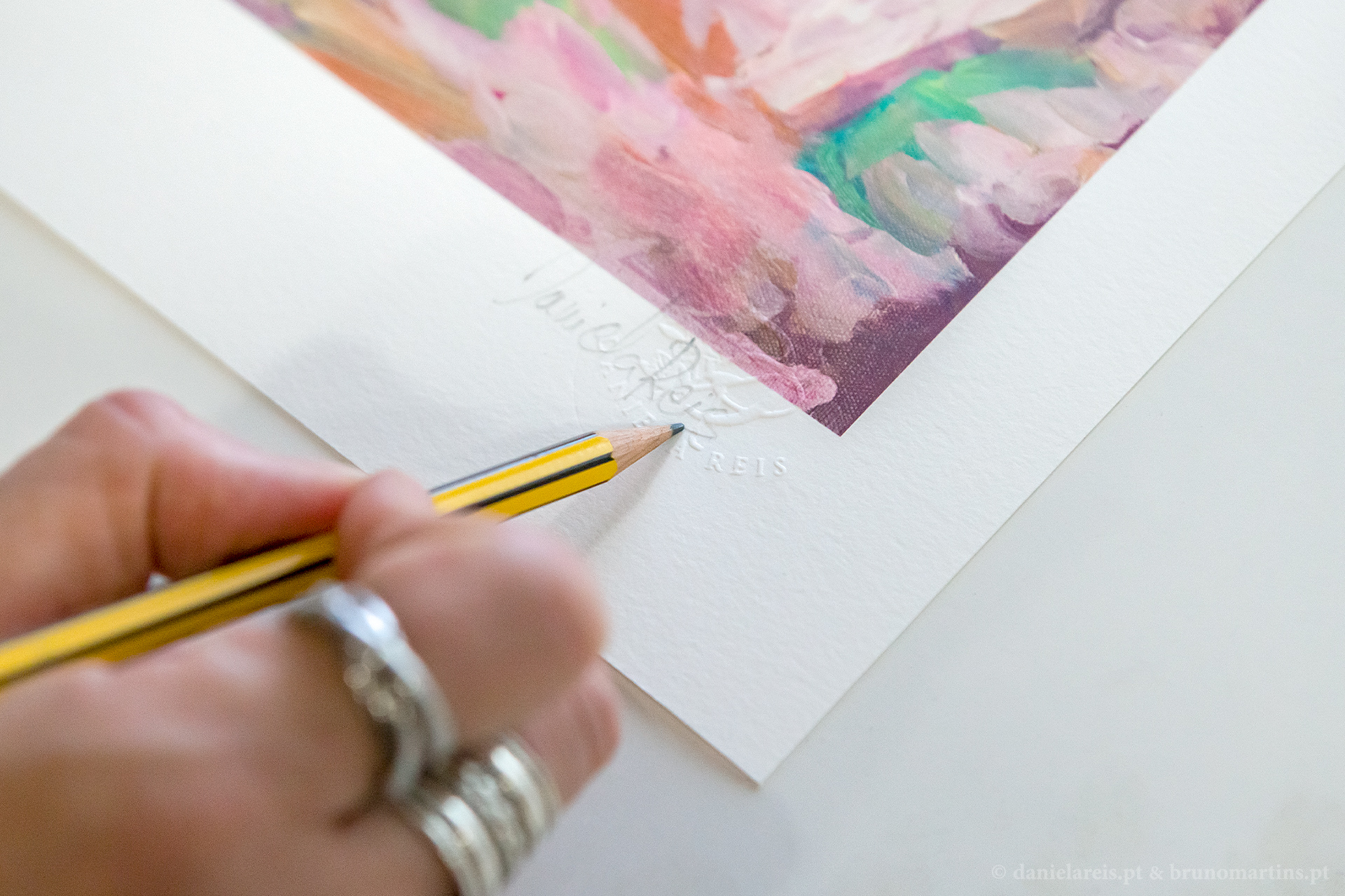 • Pessoa a assinar quadro com lápis amarelo